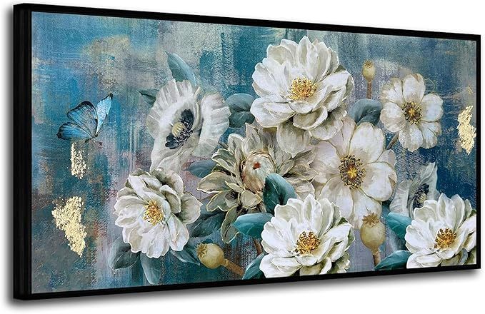 Arjun Flowers Canvas Wall Art White Elegant Modern Picture Gold Foil Colorful Painting Turquoise Floral Teal Artwork is on pr!ce dr0p at checkout #ad