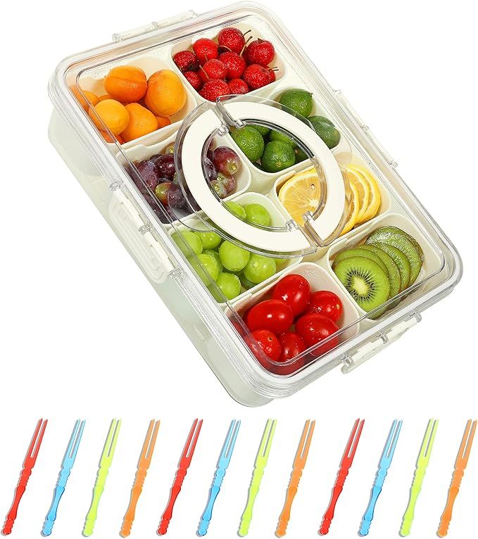 50% 0ff!! Divided Serving Tray with Lid and Handle, Portable Snackle Box Charcuterie Container with 8 Compartments & 80 Pcs Fruit Forks , is on deal at checkout #ad