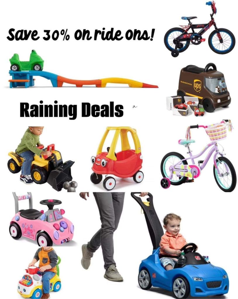 Ride ons suppimiraNovember 18, 2024Deals Post navigation PreviousNext Tons of ride on toys are 30% off today only!! That Step 2 push car and roller coaster were 100% worth the money for us when our kids were little, used tons and then resell value is also great!See belowAd SHOP DEAL Share this: Share on X (Opens in new window) X Share on Facebook (Opens in new window) Facebook Like Loading...