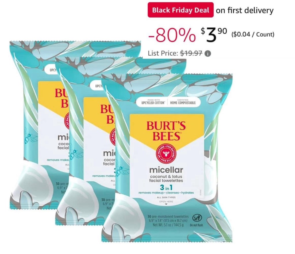 Stocking Stuffer! 80% off 3 pack of Burt’s Bees Coconut & Lotus Face Wipes when you select the S&S option (you can always cancel once item ships)!! #ad