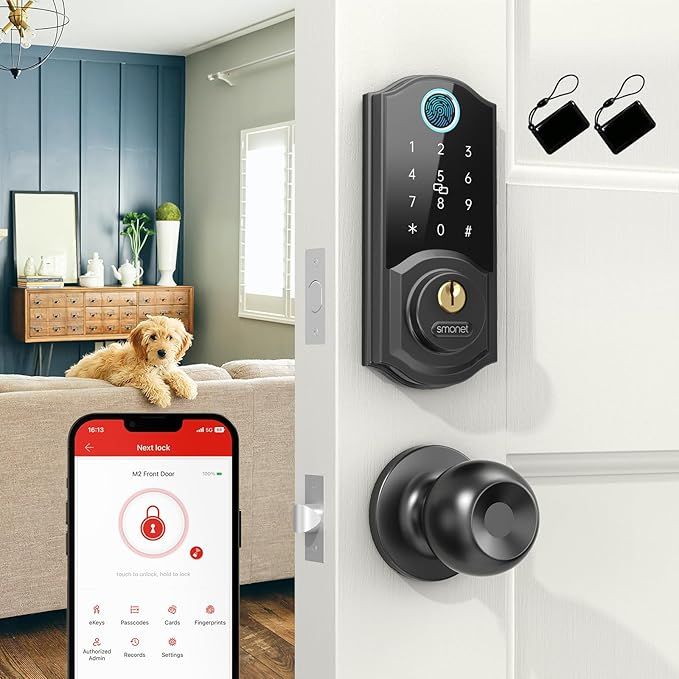 50% 0ff!! Keyless Entry Door Lock with Handle Set – SMONET Fingerprint Front Door Deadbolt Set with Knobs is on deàl at checkout #ad