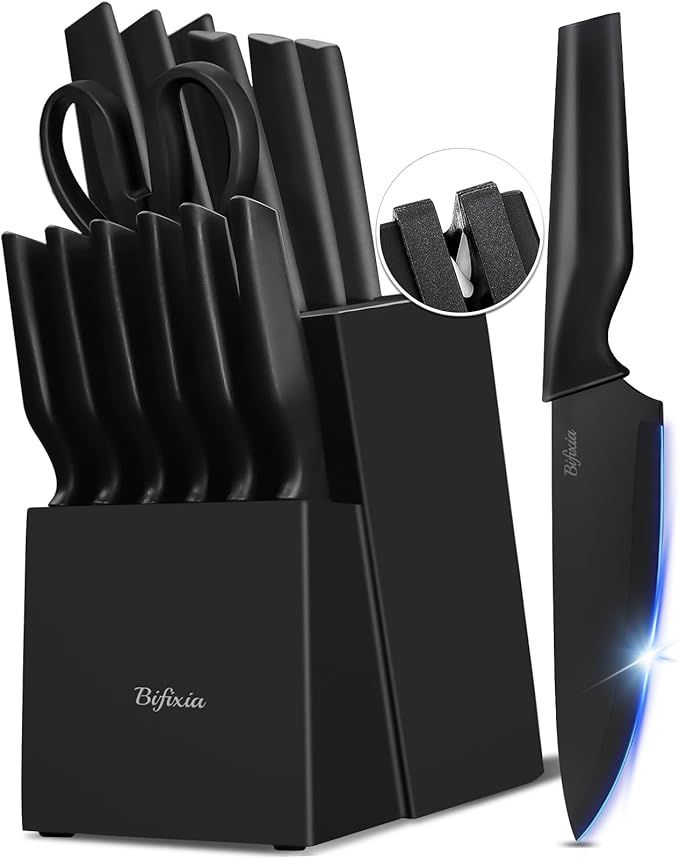 50% 0ff!! Knife Sets for Kitchen with Block, Bifixia 15 Pcs Knife Block Set with Built-in Sharpener, is on deàl at checkout #ad