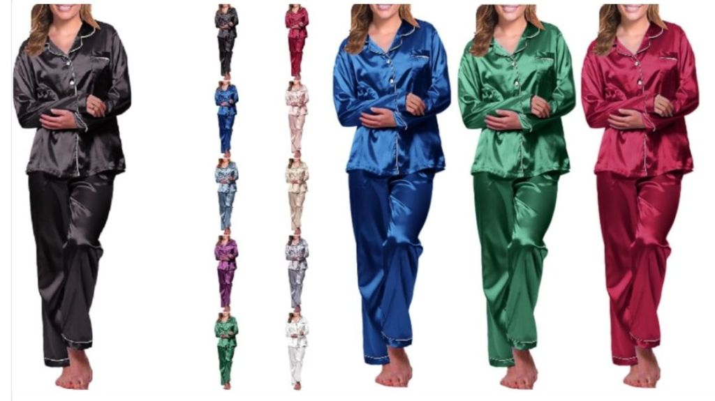 50% 0ff!! Pajamas For Women Set Pants Soft Button Down Long Sleeve V Neck Satin Silk Shirts Sleepwear is on deàl use qode 6KLOJ486 at checkout #ad