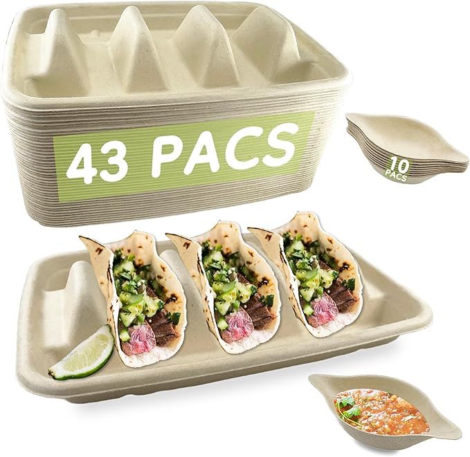 50% 0ff!! 43 pcs Disposable Taco Holder Trays for Party, with 3 Dividers ,10 Disposable Dip is on deàl at checkout #ad