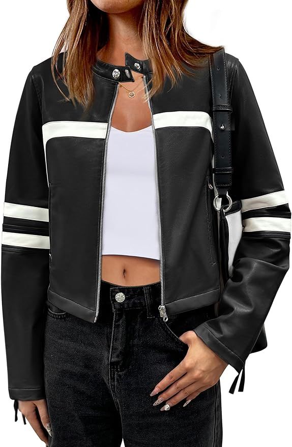 38% 0ff!! ANRABESS Women’s Faux Leather Jackets Zip Up Stand Collar Cropped Moto Biker PU Outerwear Coat is on deàl at checkout #ad