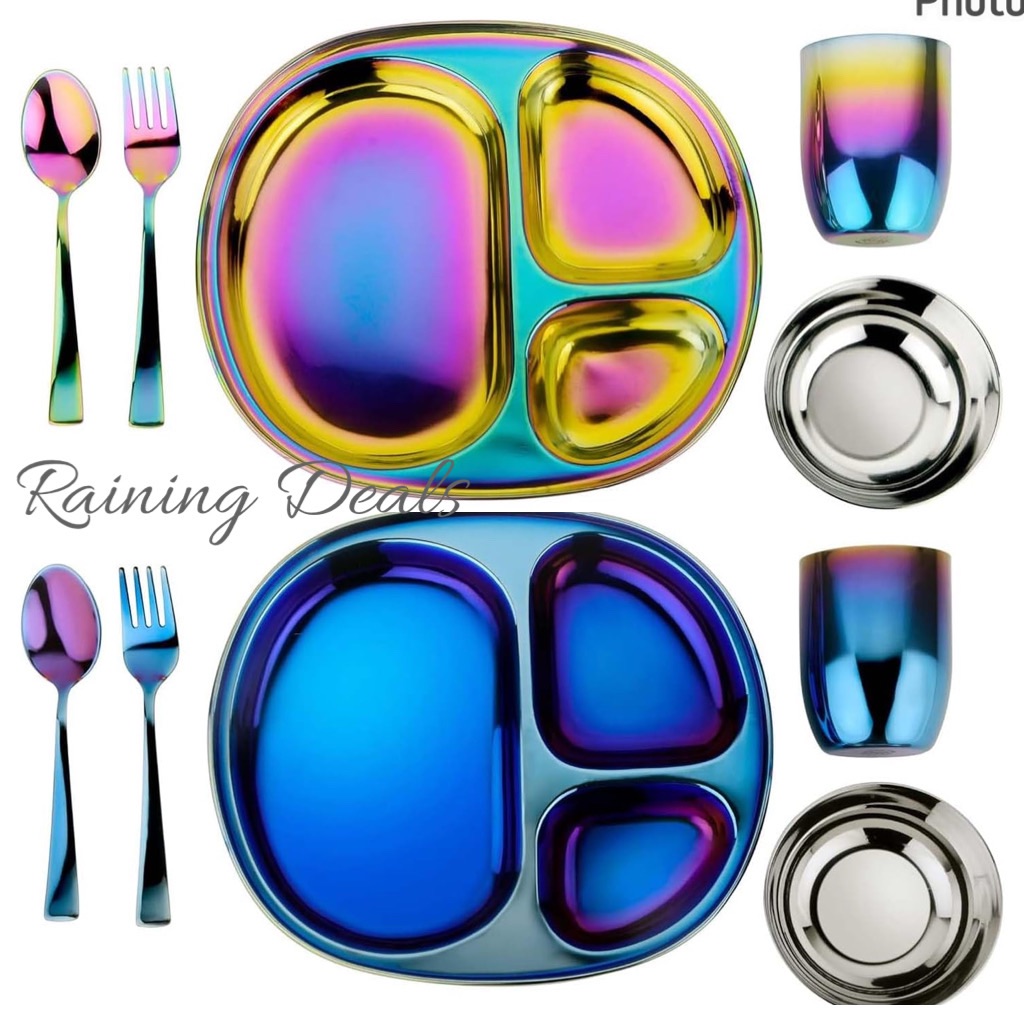 How cool are these stainless steel plates!! Just got the rainbow one for my daughter and yes they are dishwasher safe!! On a slight drop!! #ad