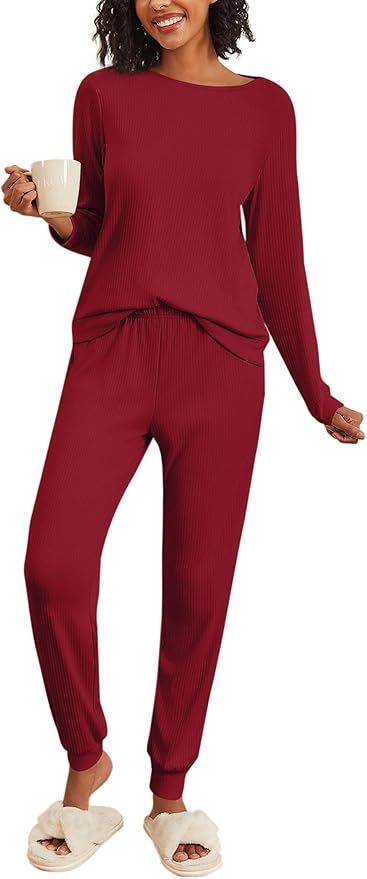 20% 0ff!! Ekouaer Womens Ribbed Knit Pajama Sets 2 Piece Jogger Pjs Long Sleeve Sleepwear is on deàl clip qpon at checkout #ad