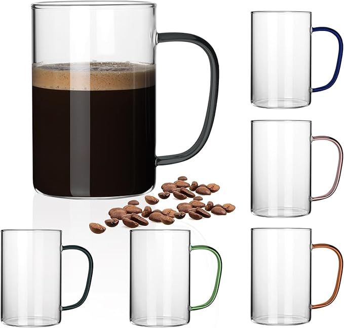 56% 0ff!! HORLIMER 16 oz Glass Coffee Mugs Set of 6, Clear Coffee Cup with Assorted Colored Handle is on pr!ce dr0p at checkout #ad