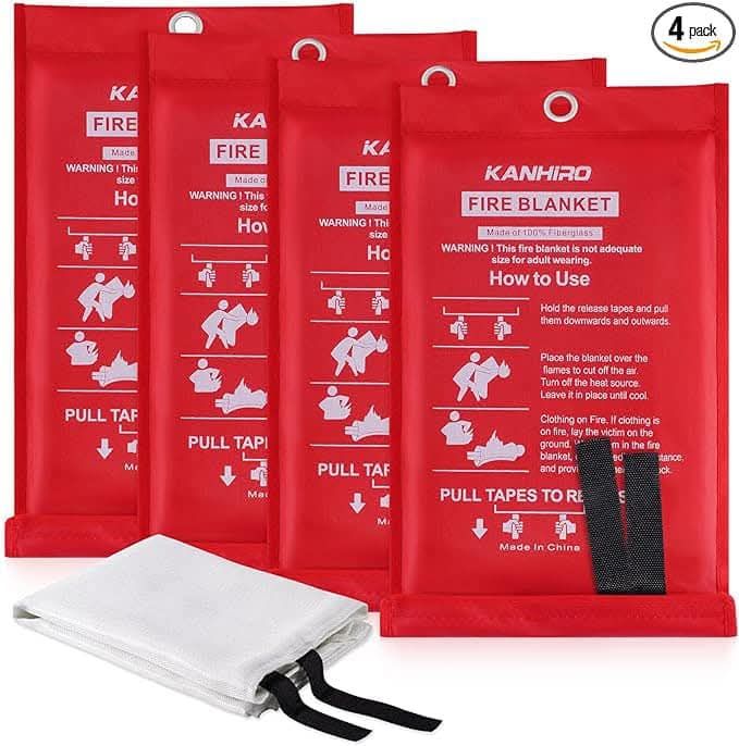 Ive never seen this low! Provide your family with safety and security!! Emergency Fire Blanket for Home Kitchen – Fiberglass Fire Suppression Blanket Great for School, Fireplace, Grill, Car, Office, Warehouse (4 Pack, 39 in X 39 in) #ad