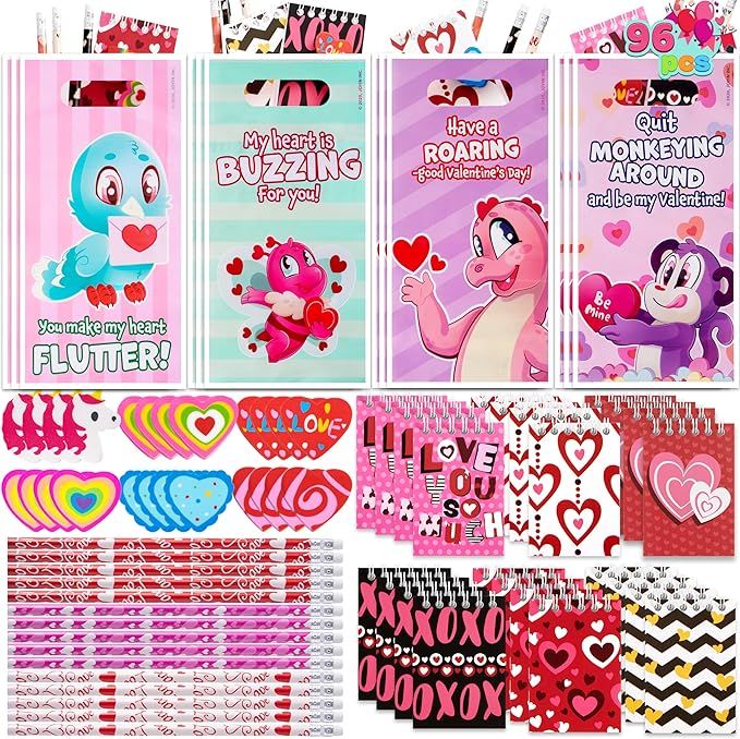 50% 0ff!! JOYIN 96 Valentines Day Stationery Gifts with Pencil, Erasers, Notebook & Bags for Kids is on pr!ce dr0p at checkout