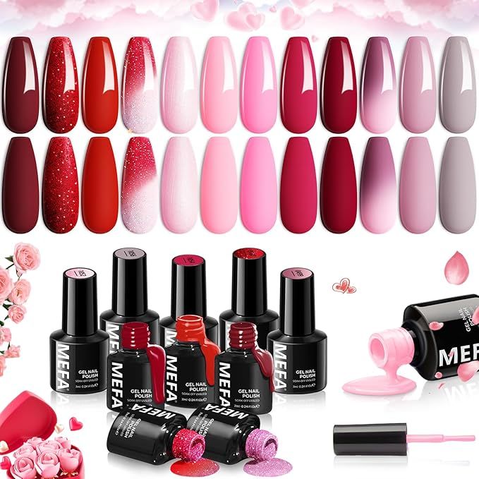 30% 0ff!!!MEFA Gel Nail Polish Set, 12 Colors Burgundy Red Gel Polish Set Valentine’s Shimmering Red Pink Glitter Nail Polish is on deàl use qode N9Q67TJ4 at checkout #ad