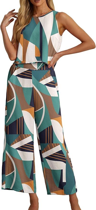 50% 0ff!! IWOLLENCE Women’s Summer 2 Piece Outfits Set Round neck Sleeveless Tank Crop Top Wide Leg pants Set is on deàl at checkout #ad