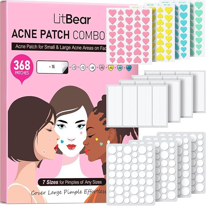 50% 0ff!! LitBear 3 IN 1 Acne Patch for Face, 7 Sizes 368 Patches Hydrocolloid Acne Patches is on deàl at checkout #ad