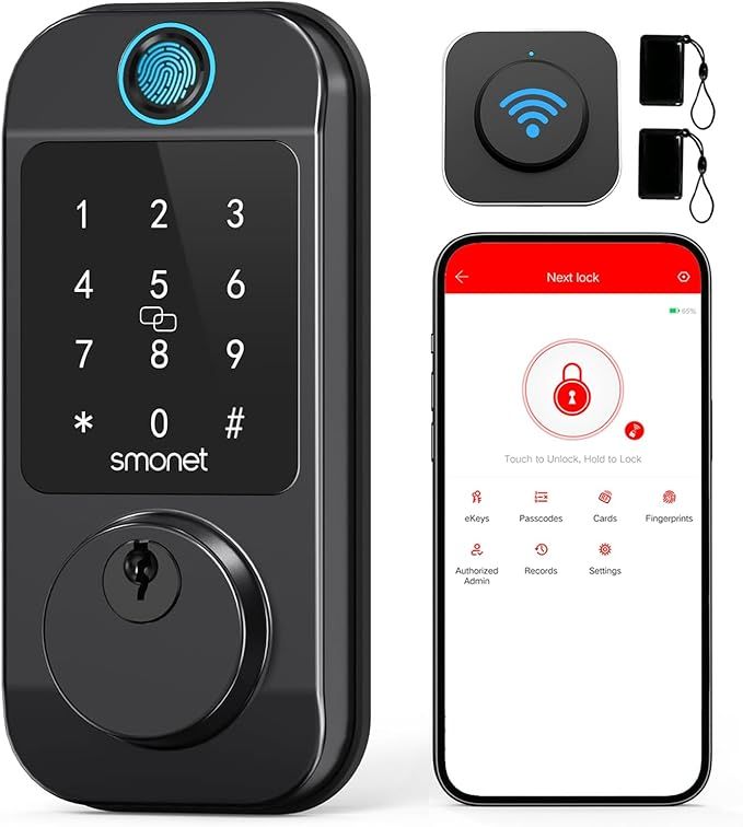 40% 0ff!! Smart Locks WiFi Deadbolt: SMONET Fingerprint Front Door Lock Keyless Entry with Keypad is on deàl clip qpon at checkout #ad