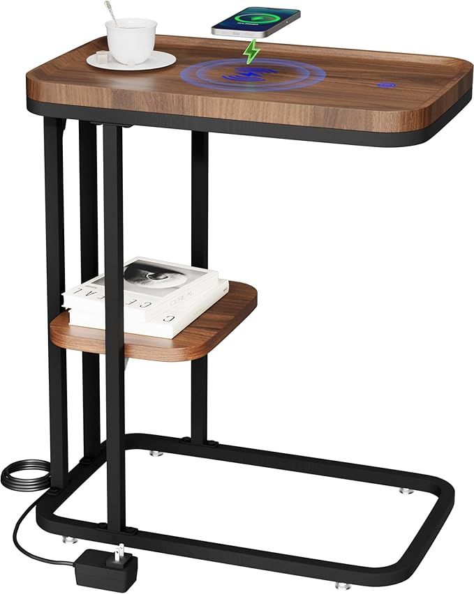 50% 0ff!! C Shaped End Table with Wireless Charging Station, Smart Side Table, LED Nightstand, is on deàl at checkout #ad