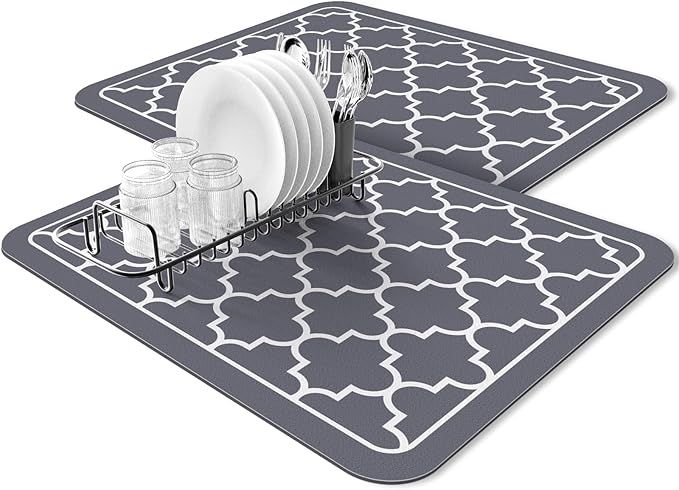 30% 0ff!! WISELIFE 2-PACK Dish Drying Mat (15″ x 18″ Stylish Grey) Large Draining Mat is on deàl clip qpon at checkout #ad
