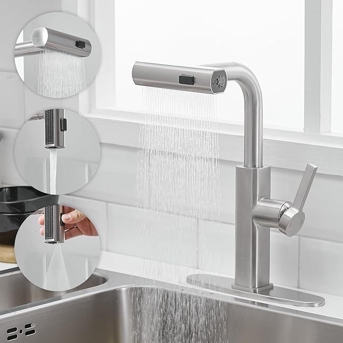 50% 0ff !! RUMOSE Kitchen Faucets with Pull Down Sprayer Brushed Nickel Waterfall Kitchen Sink Faucet is on deàl clip qpon at checkout #ad