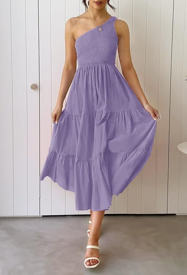 50% 0ff!! ZESICA Women’s 2025 Bohemian Summer Floral Print One Shoulder Sleeveless Smocked Ruffle Tiered Beach Long Midi Dress is on deàl clip qpon at checkout #ad