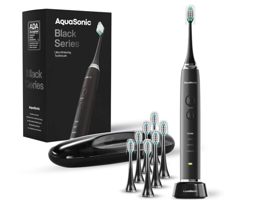 This Aquasonic Black Series Ultra Whitening Toothbrush is 40% off today–$29.95 shipped and 8 brushes included!! #ad