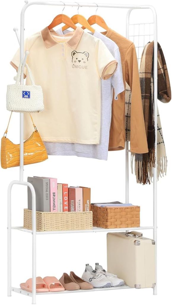 38% 0ff!! melos Portable Hanger, Metal Clothes Rack with Bottom Shelf and 3 Hooks, is on deàl clip qpon at checkout #ad