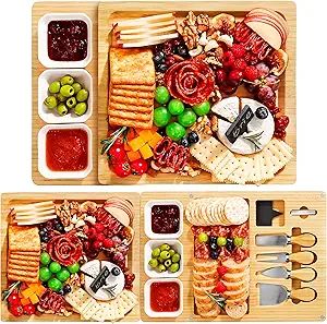 50% 0ff!! Easoger Bamboo Charcuterie Boards and Knife Set, 3 in 1 Magnetic Extra Large Cheese Board is on deàl clip qpon at checkout #ad