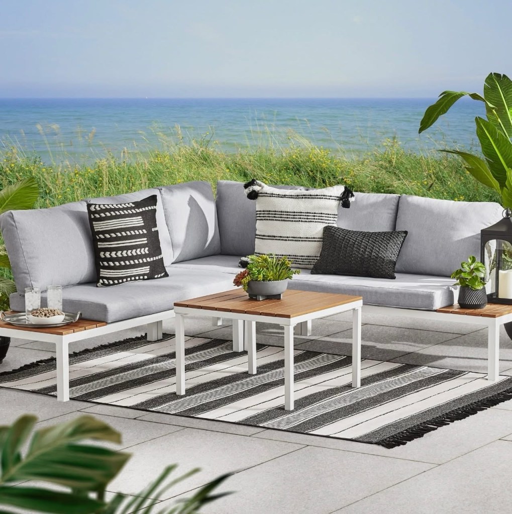 This new Mainstays patio sectional set gets great reviews…and you can’t beat the price!!! $100 OFF right now!! #ad