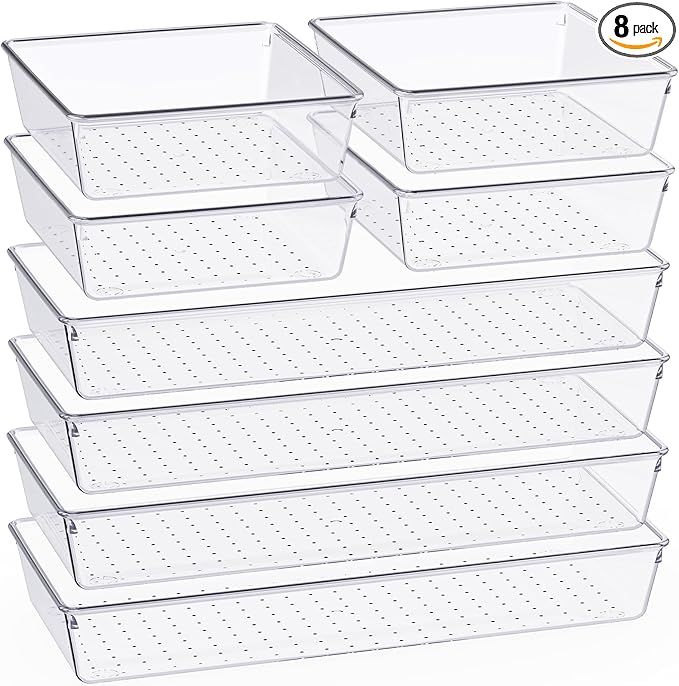 50% 0ff!! Criusia 8 Pack Large Clear Plastic Drawer Organizer Set, Bathroom Organizer Vanity Trays Dividers is on deàl clip qpon at checkout #ad