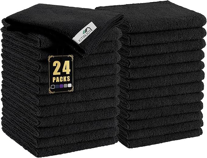 50% 0ff!! Kitinjoy 24 Pack Microfiber Cleaning Cloth(12 x 12 Inches, Black), Ultra Soft and Absorbent Cleaning Rags, are on deàl clip qpon at checkout #ad