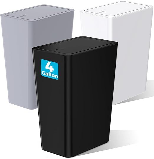 34% 0ff!! 4 Gallons Bathroom Trash Can with Lid, 3 Pack 15 Liters Slim Garbage Can with Pop Up Lid is on deàl use qode YA5F5OYB at checkout #ad
