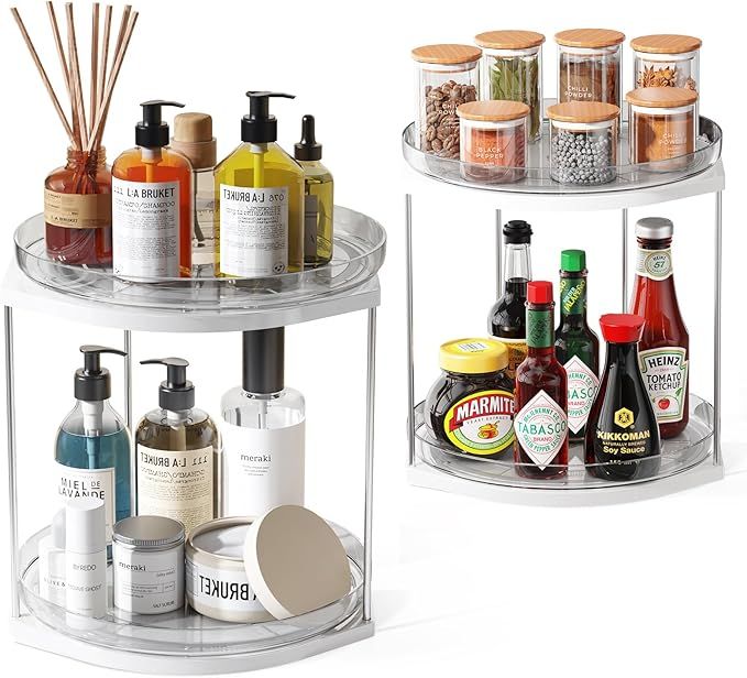 2 Pack 2 Tier Lazy Susan Turntable Organizer, 9.05″ Rotating Spice Rack and Makeup Skincare Organizer for Vanity, is on pr!ce dr0p at checkout #ad