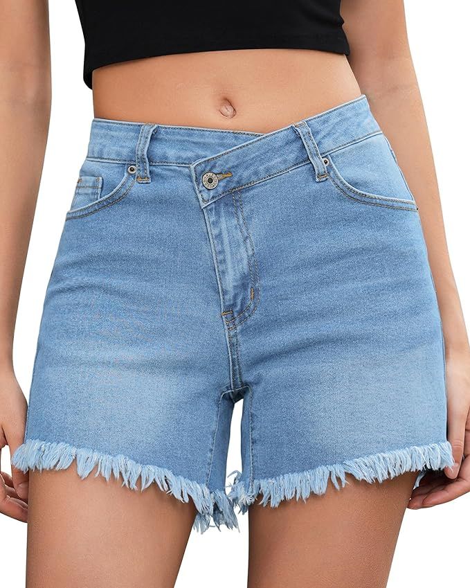45% 0ff!! LookbookStore Jean Shorts for Women Low Waisted Stretchy Crossover Waist Denim Shorts are on deàl clip art #ad