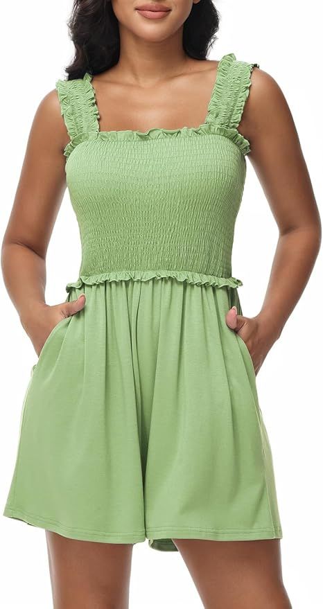 50% 0ff!! Tanou Women’s Summer Casual Smocked Rompers Square Neck Sleeveless Loose Short Jumpsuit is on deàl clip qpon at checkout #ad