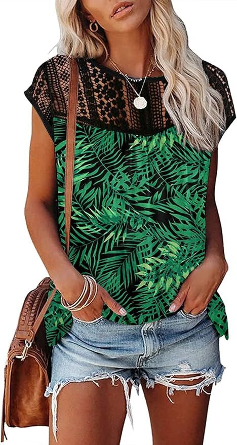 50% 0ff!! ETCYY Womens Cap Sleeve Summer Tops 2025 Trendy Loose Fit Lace Short is on deàl clip qpon at checkout #ad
