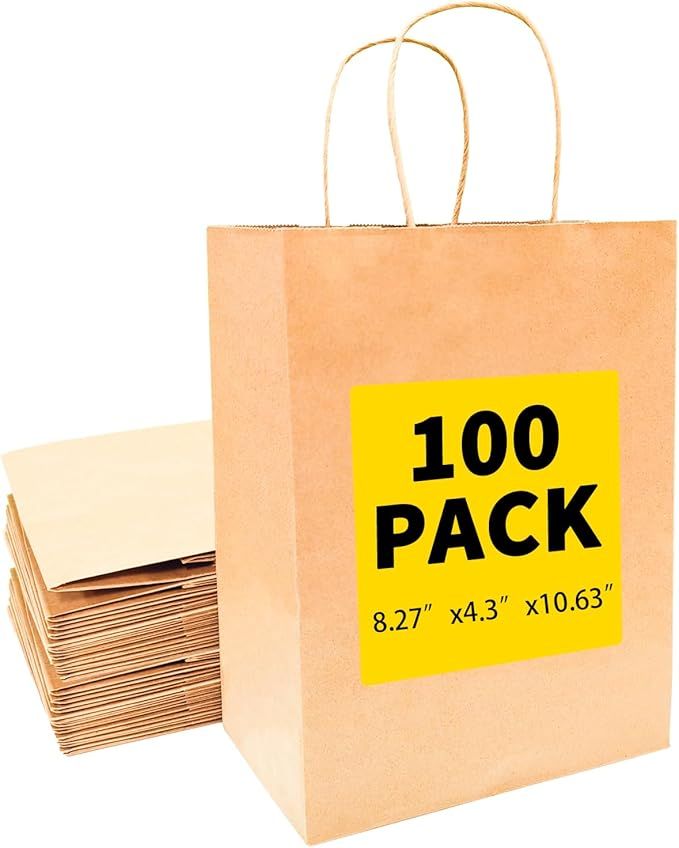 50% 0ff!! BAG BOX 100 Pcs Medium 8.25×4.3×10.6 Inch Brown Kraft Paper Gift Bags is on deàl clip qpon at checkout #ad