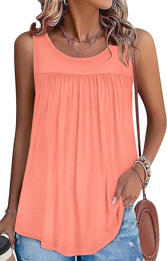 50% 0ff!! WEESO Tank Top for Women Summer Sleeveless Pleated Crewneck T Shirts are on deàl clip qpon at checkout #ad