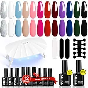 50% 0ff!! MEFA 19 Pcs Gel Nail Polish Kit with U V Light, 12 Colors All Seasons Soak Off Gel Polish Nail Set is on deàl use qode AFGS7FQP at checkout #ad