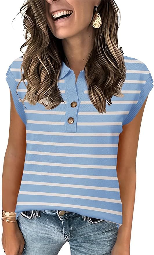 Womens Cap Sleeve Sweater Vest Summer V Neck Lightweight Casual Button Front is on deàl clip qpon at checkout #ad