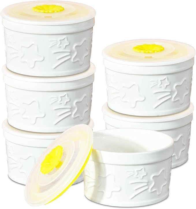 50% 0ff!! Ramekins with Lids 10 oz, Set of 6, White Porcelain Creme Brulee Souffle Ramekins with Covers, is on deàl clip qpon at checkout #ad