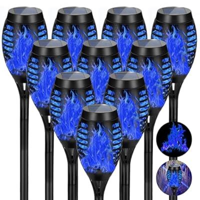 50% 0ff!! Solar Lights Outdoor, Upgraded 10 Pack Blue Solar Torch Light with Flickering Flame for Garden Decor is on deàl clip qpon at checkout #ad