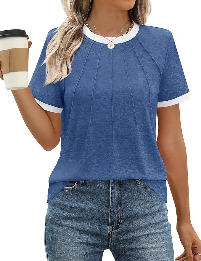 50% 0ff!! ZESICA Women’s Casual Short Sleeve Trendy Shirts 2025 Summer Dressy is on deàl clip qpon at checkout #ad