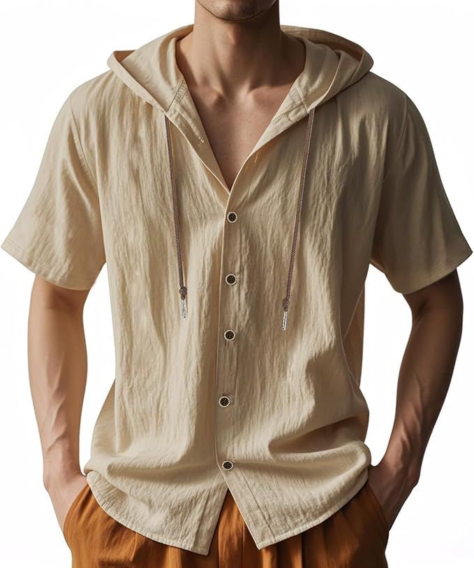 50% 0ff!! Men’s Summer Cotton Linen Hooded Shirt Casual Button-Up Beach Shirt is on deàl clip qpon at checkout #ad