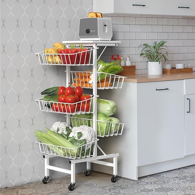 50% 0ff!! Fruit Basket Kitchen Cart, 6 Tier Metal Wire Basket Cart, Fruit Vegetable Storage Basket is on deàl clip qpon at checkout #ad