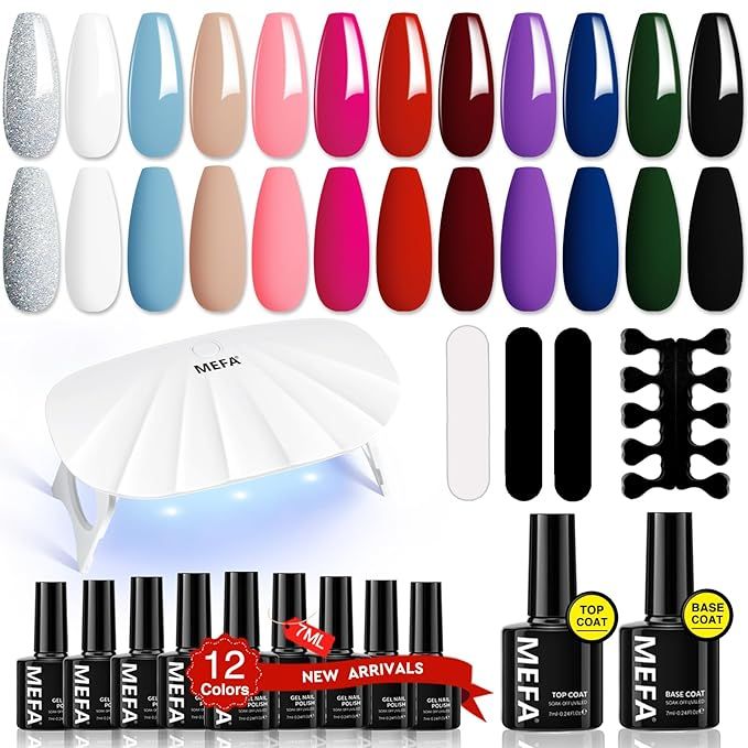 50% 0ff!! MEFA 19 Pcs Gel Nail Polish Kit with U V Light, 12 Colors All Seasons Soak Off Gel Polish is on deàl use qode XRHQGAPX at checkout #ad