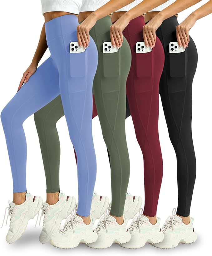 50% 0ff!! 4 Pack Leggings with Pockets for Women – Soft High Waisted Tummy Control Workout Yoga is on deàl clip qpon QN743XTZ at checkout #ad