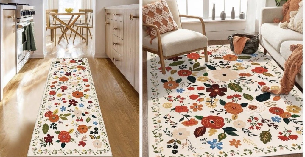 Check out these adorable runners and rugs, perfect for a nursery, playroom or classroom! Machine washable, because let’s face it, kids can be messy! This pretty floral, washable runners and rugs are on drop at check out! #ad
