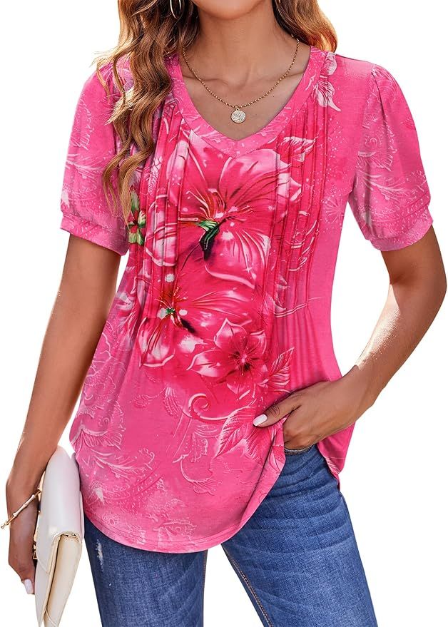 34% 0ff!! Zeagoo Women’s Puff Short Sleeve Boho Shirts Casual V Neck Floral Solid Summer Blouse is on deàl clip qpon at checkout #ad