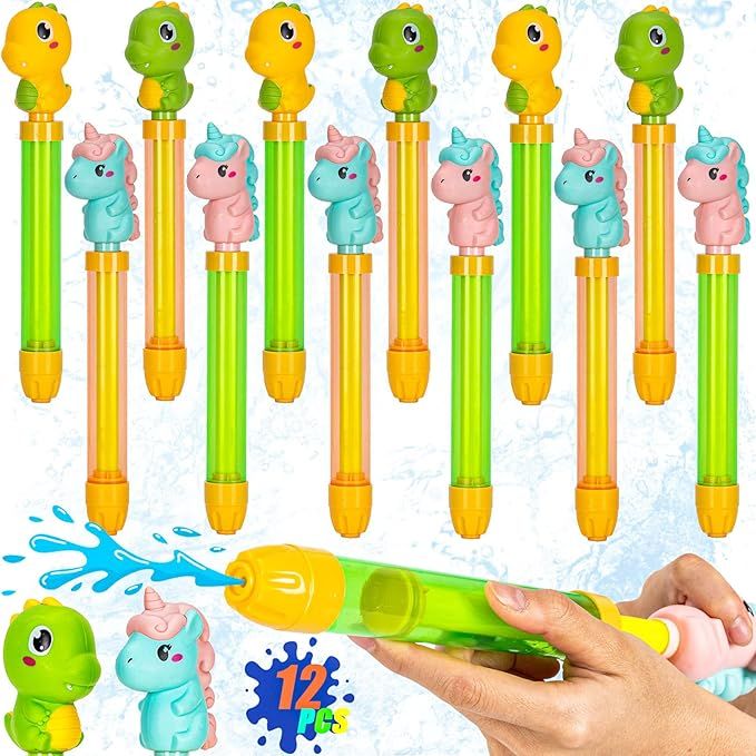 50% 0ff!! Dramosary 12 Pack Super Water Soaker Blaster Squirt Guns, Dinosaur Unicorn Water Shooters is on deàl clip qpon at checkout #ad