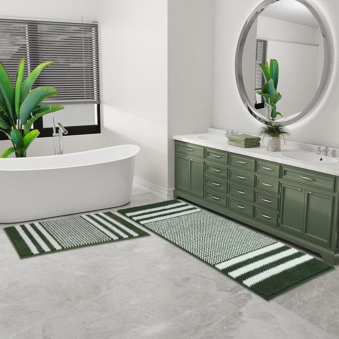 50% 0ff!! Bathroom Rugs Set 2 Piece, Extra Soft and Absorbent Fluffy Striped Chenille Bath Mat Rug Set is on deàl clip qpon at checkout #ad