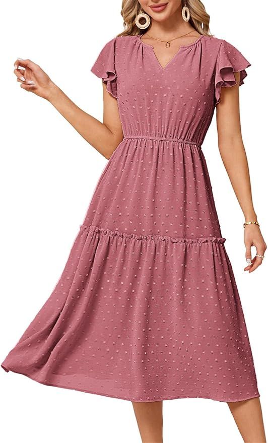 50% 0ff!! JASAMBAC Womens Dresses Casual Wrap V Neck Ruffle Short Sleeves Floral Print Flowy Dress is on deàl clip qpon at checkout #ad