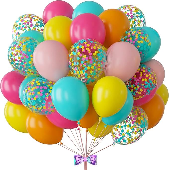 35% 0ff!! 88Pcs Tropical Balloons and Luau Balloons 12inch Hot Pink Orange Yellow Green Teal Latex Confetti is on deàl clip qpon at checkout #ad